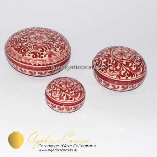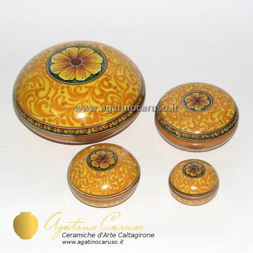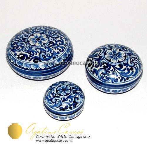 Bomboniera portagioie ceramica dipinto a mano con decorazioni in tonalità. Scatola portagioie in ceramica di Caltagirone. Decori personalizzabili.